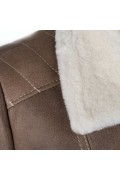 This light brown bomber has ornated stitching lines to create relief to emphasize your silhouette. It is made of high quality 100% merino lamb fur. It is handmade using traditional methods. Very warm, very stylish, this bomber is fully lined in lamb fur and the outside is treated anti-repellent. The line is fine and very successful.